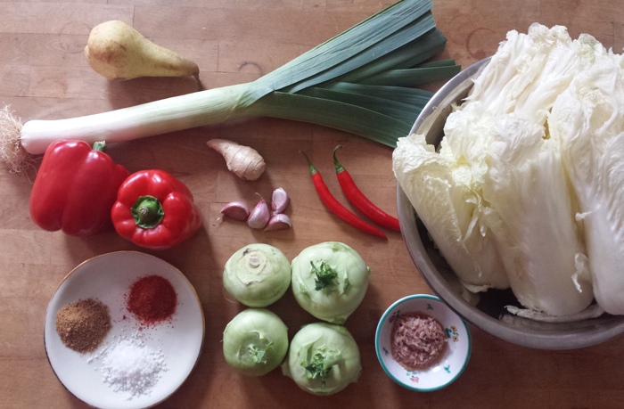 Die Zutaten für ca. 4 kg Kimchi