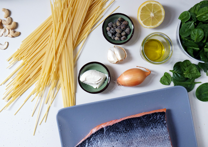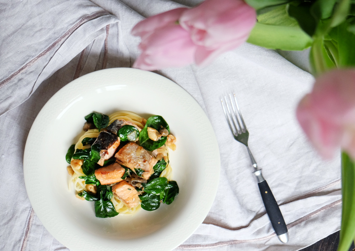 Neulich habe ich dieses Gericht mit Spaghetti, Lachs und Salzkapern als schnelles Abendbrot gemacht. Schon länger hatte ich die Salzkapern, die ich in dem feinen Delikatessen-Geschäft L’Epicerie gekauft habe, in meinem Kühlschrank und wartete nur auf den richtigen Einsatz. Denn eigentlich war ich früher nie ein großer Kapern-Fan. Und Kapern gab es bei uns recht häufig, wenn es mal wieder hieß „die Königsberger Klopse sind fertig“. Aber wie das mit den Geschmäckern ja glücklicherweise so ist, mag ich diese nun in geringer Menge ganz gerne, da sie Gerichten oftmals eine besondere Note geben.