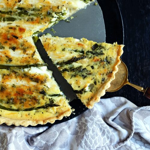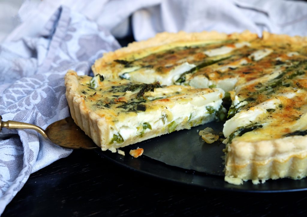 Aber zurück zur Spargelquiche. Wie jede andere Quiche auch, ist der Bestandteil ein Mürbeteig – in unserem Fall selbst gemacht – und eine Eier-Milch-Mischung, die im Ofen dann stockt. Eine Quiche bietet sich auch an um spontanen Gästen ein wunderbares Frühlingsgericht zu servieren, denn statt selbst gemachten Mürbeteig, könnte man es natürlich auch mit gekauftem aus dem Kühlregal oder gar gefrorenen Blätterteig machen. Ein paar Eier, Milch und Käse und fertig ist das besondere Sonntagsgericht.