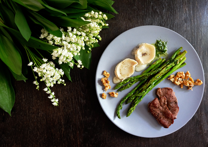 Sonntagsgericht: Ziegenkäse mit Spargel und Lamm